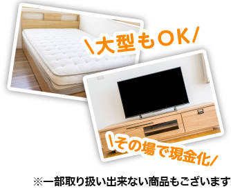 車、バイク、自転車、ベット、エアコン、冷蔵庫、テレビ、洗濯機、炊飯器、ポット、パソコン、プリンタ、ディスプレイ、ビデオカメラ、ソファ、テーブル、洋服ダンス、バック、骨董、食器、ドラム、ピアノ、楽器、家電、家具、ダイニング、デスク、テーブル、机、タイヤ、スピーカー、コンポ、スノーボード、ゴルフ クラブ、ガスコンロ、オーディオ、オフィス家具など